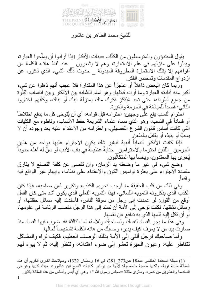 تحميل كتاب إحترام الأفكار للشيخ محمد الطاهر بن عاشور PDF محمد الطاهر بن عاشور