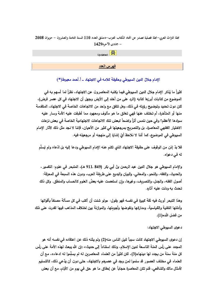 تحميل كتاب الإمام جلال الدين السيوطي وحقيقة كلامه في الإجتهاد مقالة في مجلة التراث العربي PDF أحمد معبوط