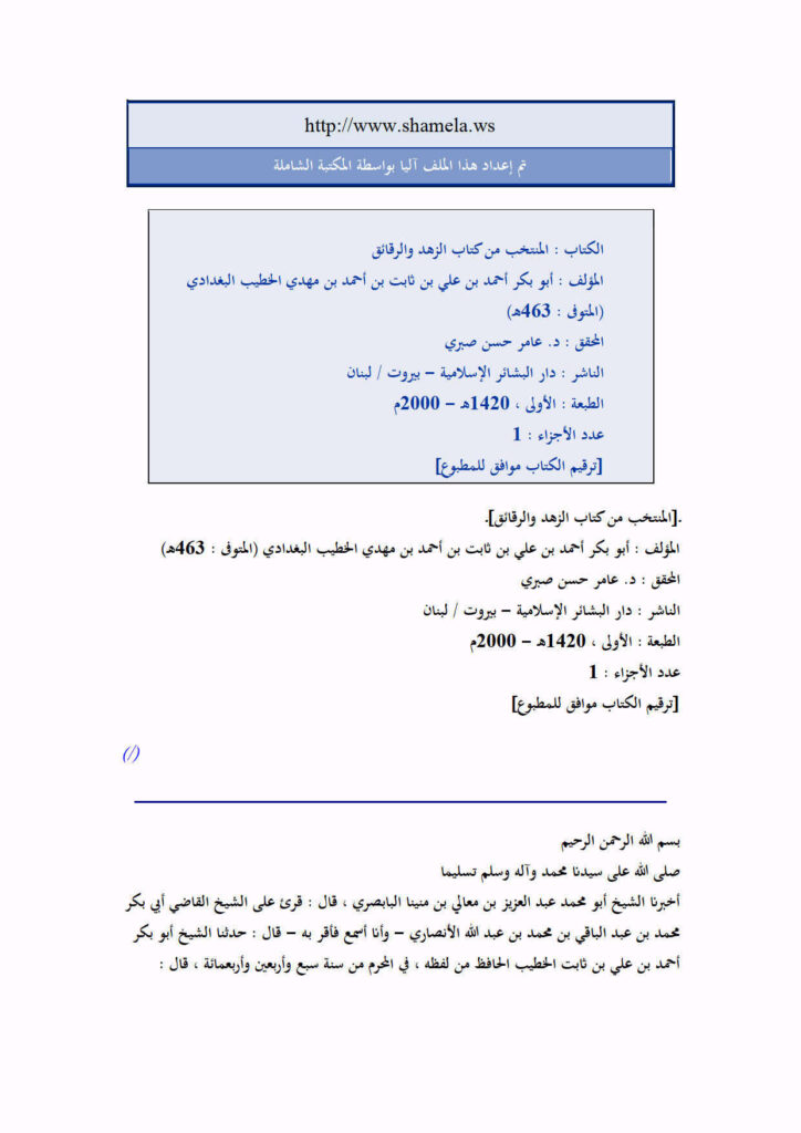تحميل كتاب المنتخب من كتاب الزهد والرقائق للخطيب البغدادي PDF