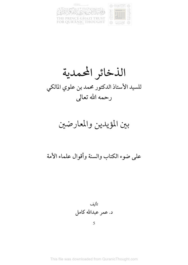 تحميل كتاب الذخائر المحمدية للسيد الأستاذ الدكتور محمد بن علوي المالكي بين المؤيدين والمعارضين على ضوء الكتاب والسنة وأقوال علماء الأمة ل عمر عبد الله كامل PDF محمد بن علوي المالكي