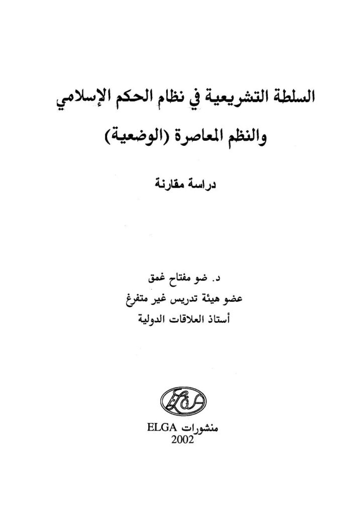 تحميل كتاب السلطة التشريعية في نظام الحكم الإسلامي والنظم المعاصرة الوضعية دراسة مقارنة ل ضو مفتاح غمق PDF نسخة منقحة